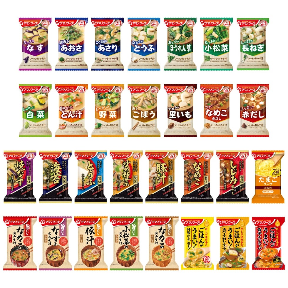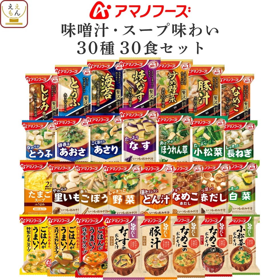 アマノフーズ フリーズドライ 味噌汁 スープ 味わい 30種30食 詰め合わせ セット 【 送料無料 】 インスタント 即席味噌汁 即席スープ ご飯のお供 即席 和風 洋風 惣菜 食品 常温 一人暮らし 仕送り 備蓄 非常食 2026 バレンタイン ホワイトデー