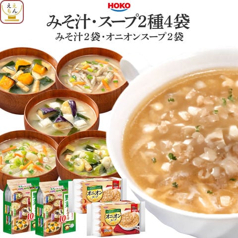 HOKO 宝幸 フリーズドライ インスタント 味噌汁 スープ 2種 詰め合わせ セット じっくり炒めたソテーオニオンとシャキシャキ食感の生たまねぎを使用した オニオンスープ 揚げなす ごぼう 白菜 長ねぎ かぼちゃ の5種類の みそ汁 が入った 野菜 の おみそ汁 毎日の 食事 や お弁当 、忙しくて時間がない時など お湯を注ぐだけで いつでも 簡単 手軽 に出来立ての 美味しさ を頂けます。