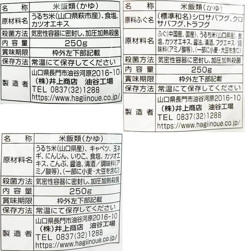 萩のおかゆ 250g おかゆ ふぐスープ仕立て 250g おかゆ 野菜スープ仕立て 250g 3種 3食 |