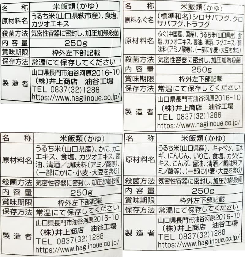 萩のおかゆ 250g おかゆ ふぐスープ仕立て 250g おかゆ かにスープ仕立て 250g おかゆ 野菜スープ仕立て 250g 4種 各3食 合計12食 |