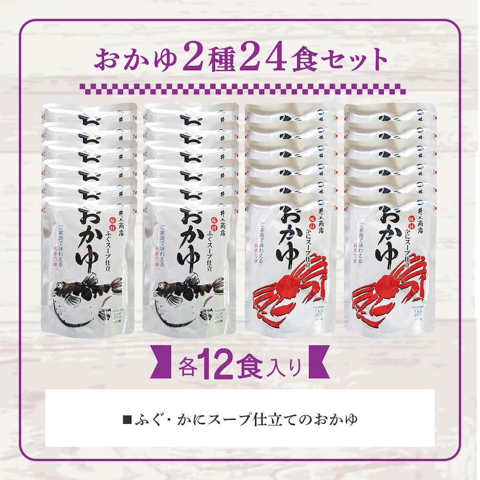 おかゆ レトルト ふぐ かに スープ お粥 詰め合わせ 2種24食 セット 【 送料無料 】 井上商店 レトルト食品 常温保存 惣菜 国産米 コシヒカリ 一人暮らし 仕送り 高齢者 食べ物 低カロリー レンジ 湯煎 非常食 ホワイトデー 2026 母の日 ギフト