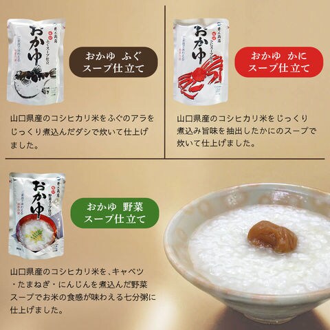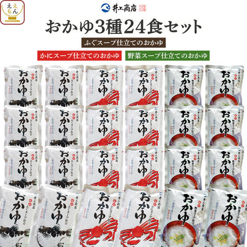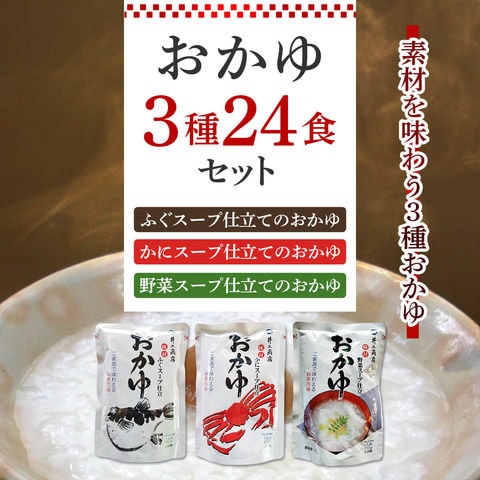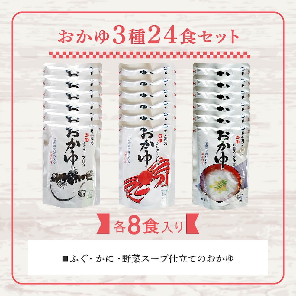 おかゆ レトルト ふぐ かに 野菜 スープ お粥 詰め合わせ 3種24食 セット 【 送料無料 】 井上商店 レトルト食品 常温保存 惣菜 国産米 コシヒカリ 一人暮らし 仕送り 子供 高齢者 低カロリー 湯煎 防災 非常食 ホワイトデー 2026 母の日 ギフト