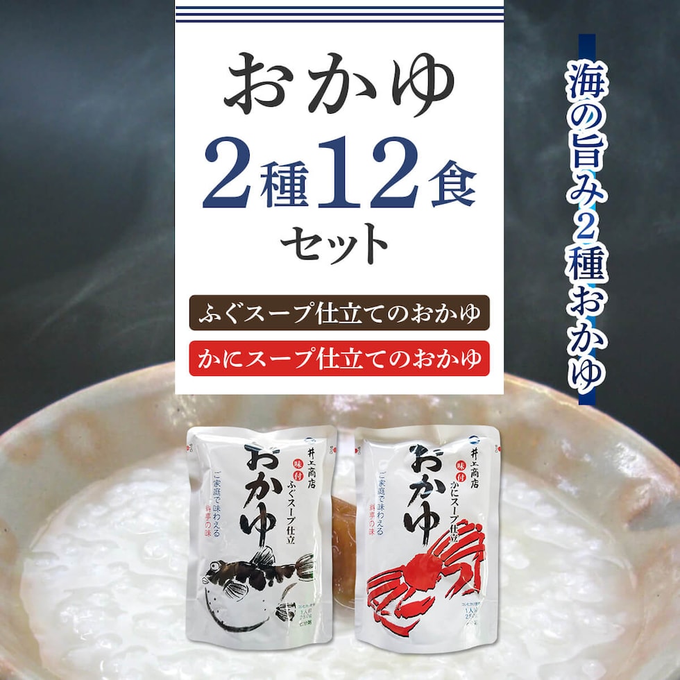 おかゆ レトルト ふぐ かに スープ お粥 詰め合わせ 2種12食 セット 【 送料無料 】 井上商店 レトルト食品 常温保存 惣菜 国産米 コシヒカリ 一人暮らし 仕送り 高齢者 食べ物 低カロリー レンジ 湯煎 非常食 ホワイトデー 2026 母の日 ギフト