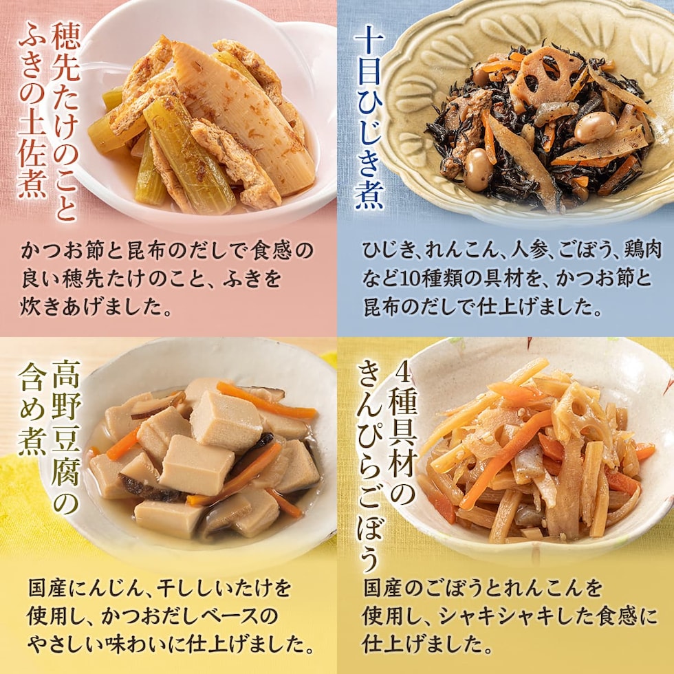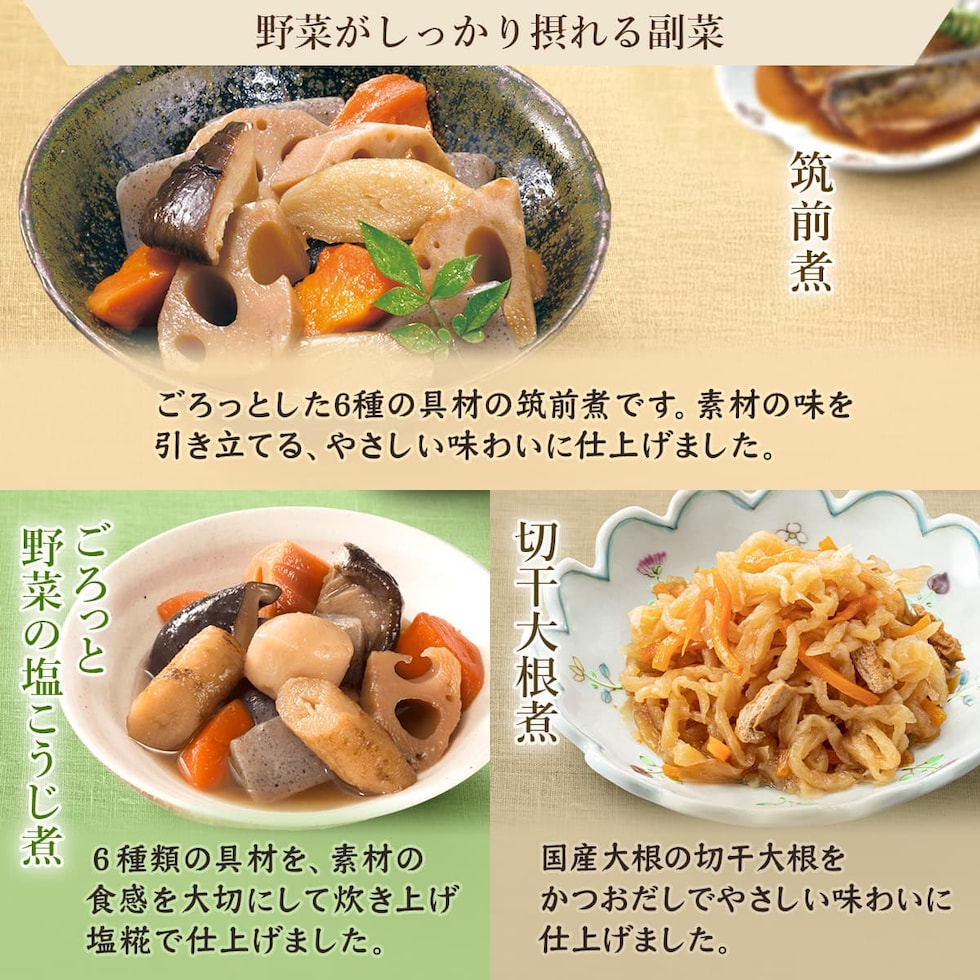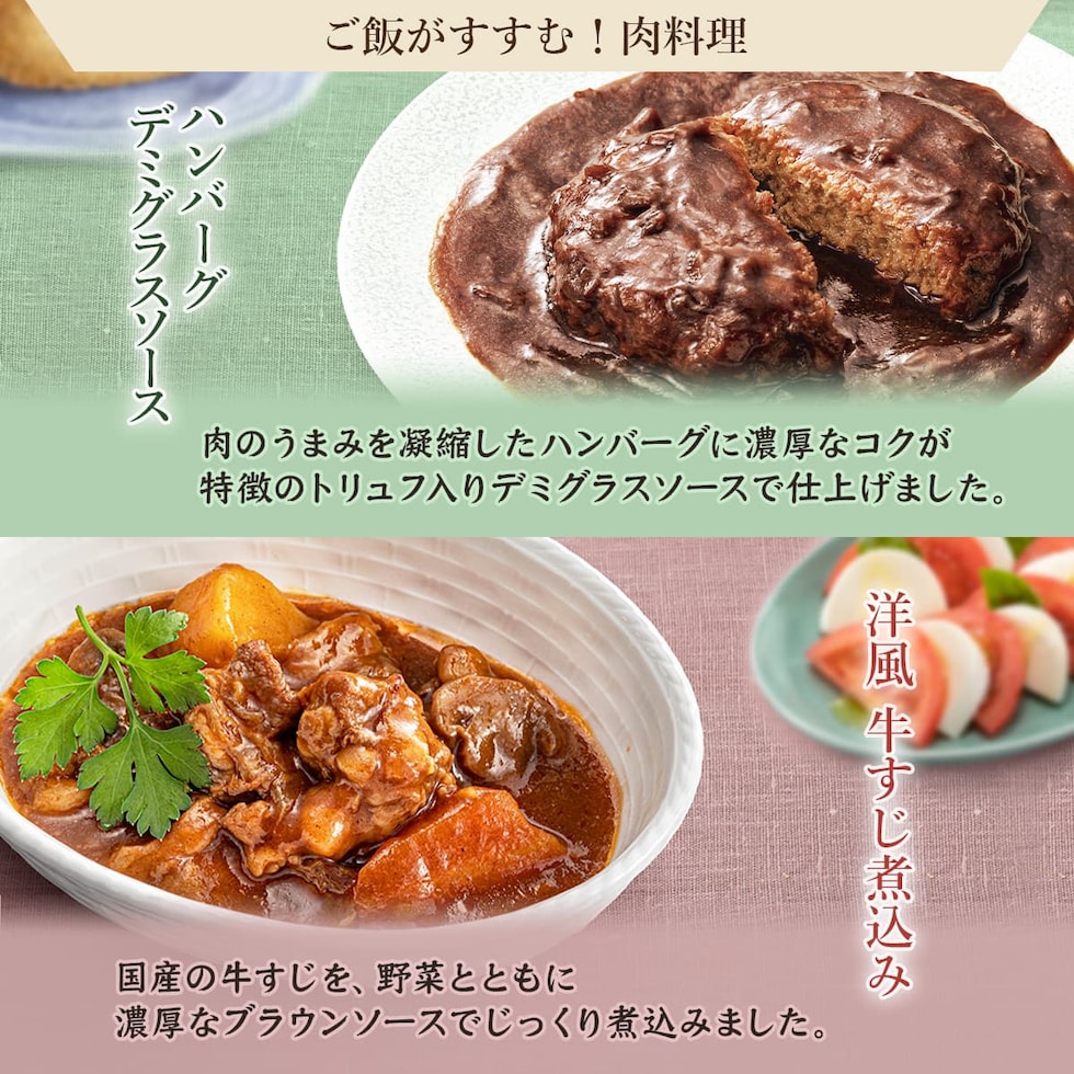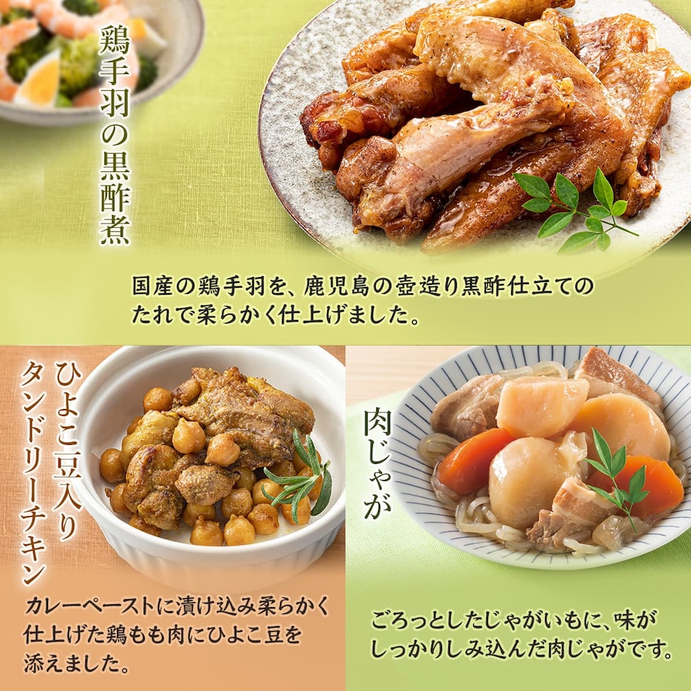 まごころを食卓に 膳 ■ 製造日より 365日 ハンバーグ デミグラスソース 150g 鶏手羽の黒酢煮 165g ぶり大根 130g いわしの梅煮 2尾 ■ 製造日より 270日 洋風牛すじ煮込み 100g ひよこ豆入りタンドリーチキン 70g ■ 製造日より 241日 高野豆腐の含め煮 100g ■ 製造日より 240日 肉じゃが 170g 筑前煮 120g ごろっと野菜の塩こうじ煮 120g 切干大根煮 85g 穂先たけのことふきの土佐煮 80g 十目ひじき煮 70g ■ 製造日より 180日 4種具材のきんぴらごぼう 70g 14種 14食 製造メーカーからの仕入商品の為 賞味期限はお届け時のものではございません。 予めご了承くださいませ。 |