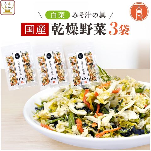 乾燥野菜 国産 カット野菜 白菜 みそ汁の具 3袋 詰め合わせ セット 【 メール便 送料無料 】 吉良食品 乾燥野菜ミックス ドライ 野菜 インスタント 味噌汁の具 各40g お試し 食品 常温保存 簡単 食材 保存食 帰省 お土産 お礼 プチギフト
