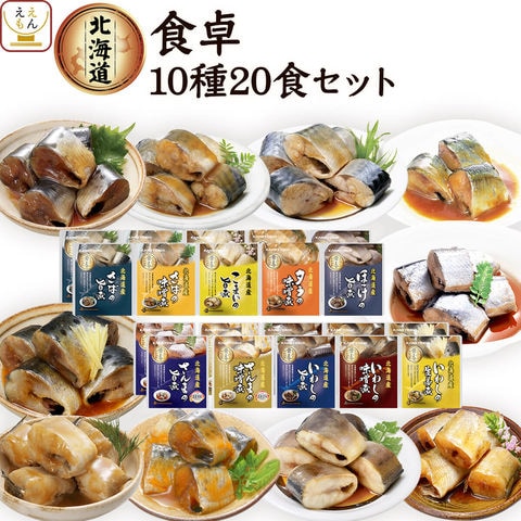 さば 旨煮 120g さば 味噌煮 120g いわし 旨煮 95g いわし 味噌煮 95g いわし 生姜煮 95g さんま 旨煮 95g さんま 味噌煮 95g こまい 旨煮 110g タラ 味噌煮 80g ほっけ 旨煮 80g 10種 各2食 合計20食 |