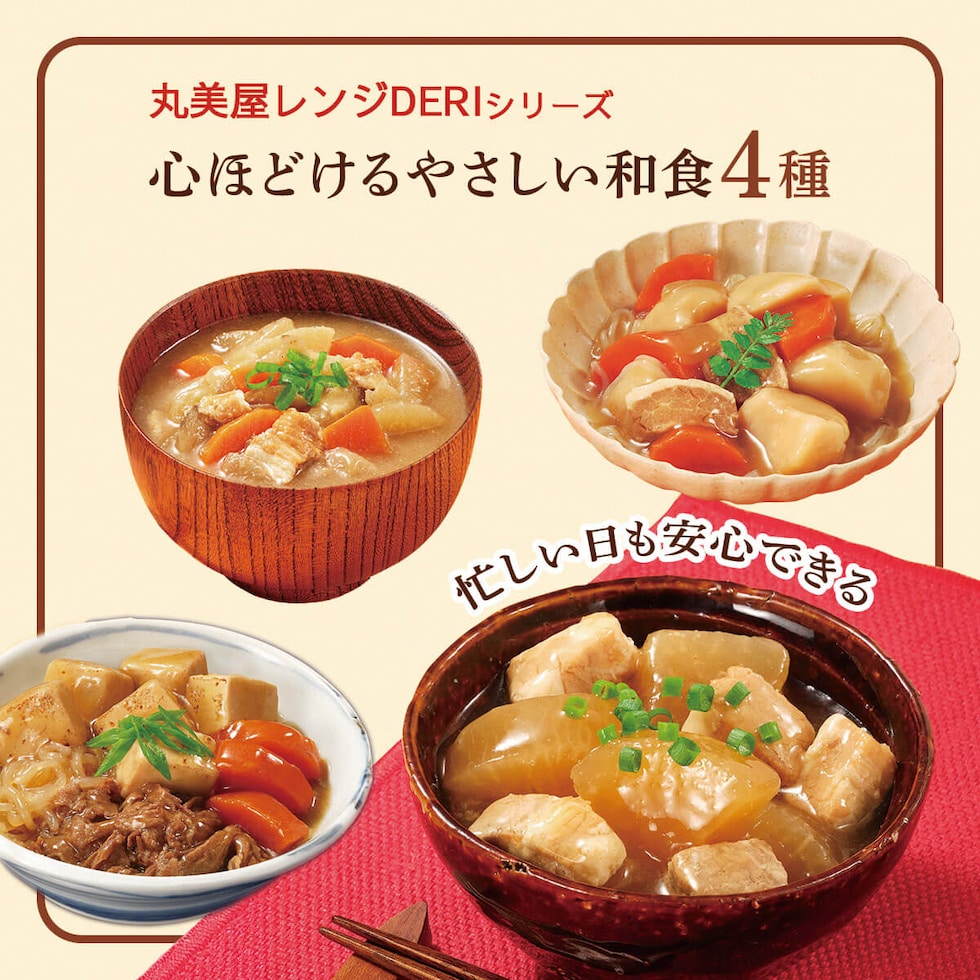 丸美屋 レンジDELI レトルト食品 和食 惣菜 詰め合わせセット 肉じゃが や 豚バラ大根煮 具だくさんの 豚汁 などの 和風 惣菜 が楽しめる おかずセット です。 レンジ対応 パウチ だから 袋のまま レンジ に入れて 温めるだけ で 美味しい お惣菜 が食べられます。 毎日の 食事 で足りない時の 一品 や 忙しい時 の 時短 ご飯 、 料理 によっては お弁当 の おかず にも おすすめ です。