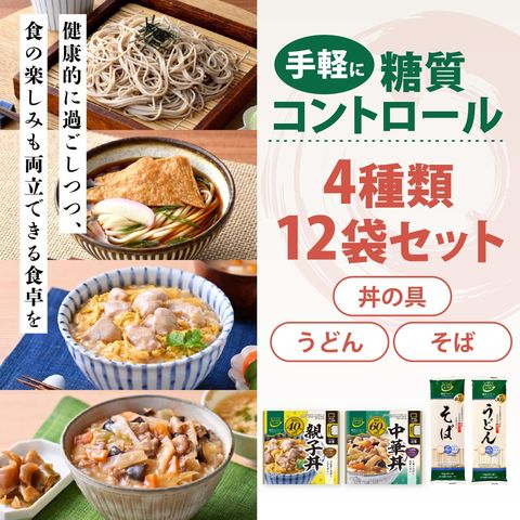 ■ 糖質コントロール 親子丼 150g×4 中華丼 150g×4 そば 160g×2 うどん 160g×2 ※製造日より1年(12ヶ月) 4種 12袋 製造メーカーからの仕入商品の為 賞味期限はお届け時のものではございません。 予めご了承くださいませ。 |