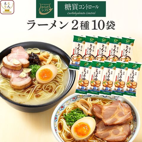 お歳暮 からだシフト 糖質コントロール 醤油ラーメン 豚骨ラーメン 2種10袋 詰め合わせ セット 【 送料無料 】 三菱食品 インスタント麺 乾麺 ラーメン 糖質オフ 低糖質 糖質制限 食品 乾麺セット 一人暮らし 備蓄 保存食 2025 お年賀 帰省 ギフト