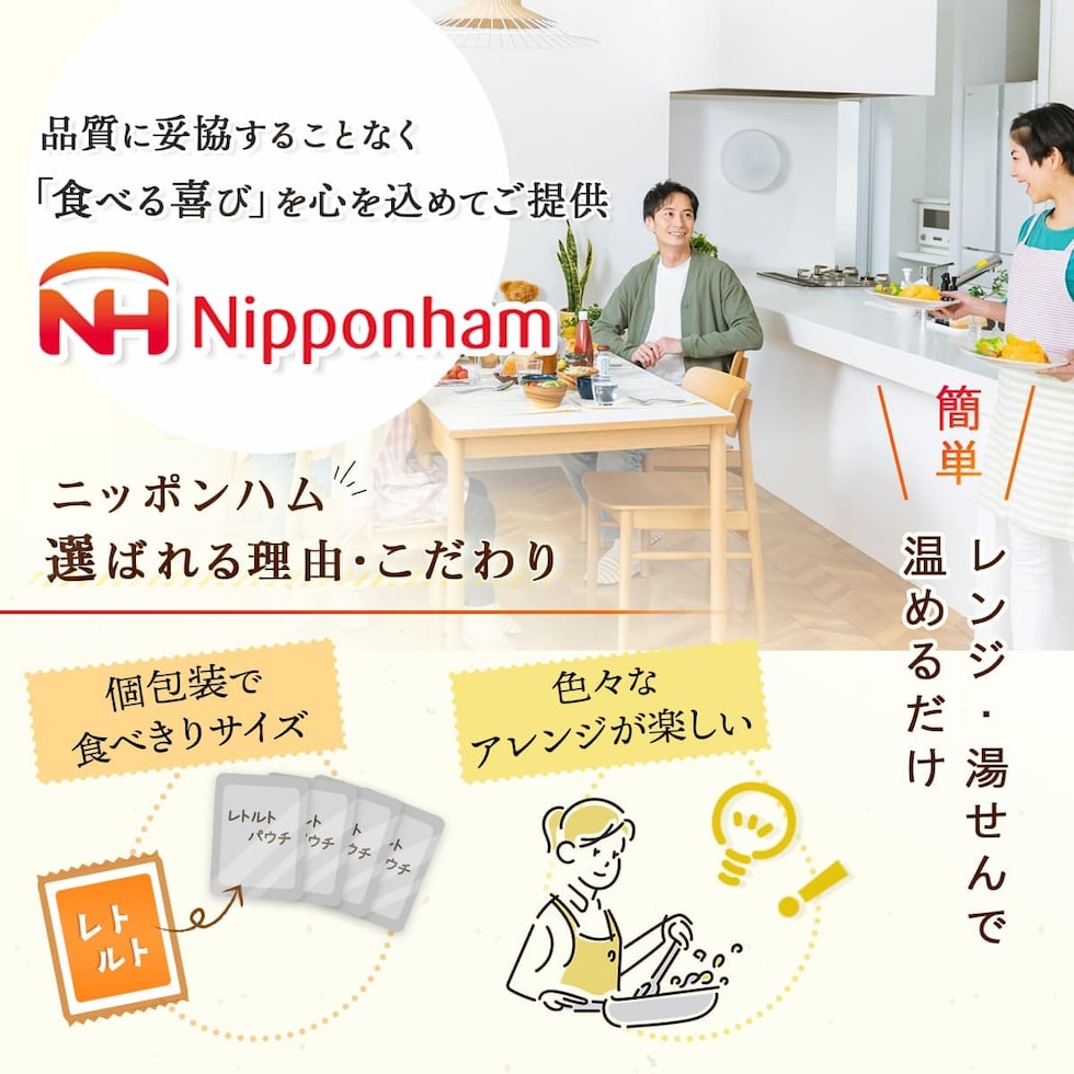 日本ハム どんぶり繁盛 カレー南蛮丼 丼の具 セット たまねぎ 鶏肉 油揚げの3種の具材入り こんぶとかつおの和風だしで仕上げました。 ご飯 の他にも そば にかけて カレー南蛮そば としても楽しめます。 レンジ 湯煎 で 温めるだけ お手軽 簡単 調理 の レトルト食品 です。