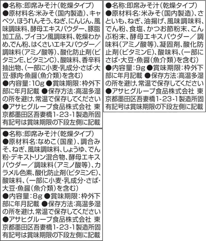 ええおかず:製造日より2年(24ヶ月) いつものおみそ汁:製造日より1年(12ヶ月) 製造メーカーからの仕入商品の為 賞味期限はお届け時のものではございません。 予めご了承くださいませ。 |