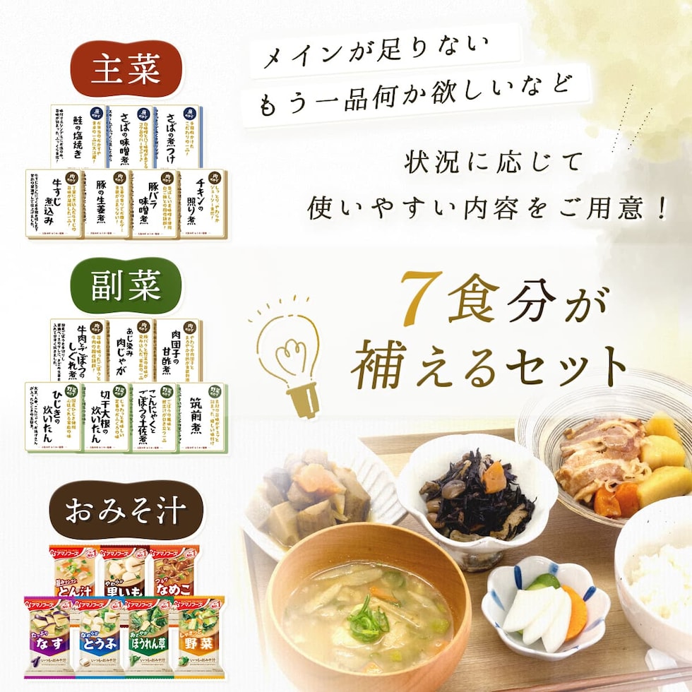 レトルト食品 常温保存 詰め合わせ 惣菜 おかず アマノフーズ フリーズドライ 味噌汁 主菜 副菜 各7食分 セット 【 送料無料 】 ええもん広場 ええおかず レトルト お惣菜 肉 魚 野菜 ご飯のお供 一人暮らし 仕送り バレンタイン 2026 内祝い ギフト