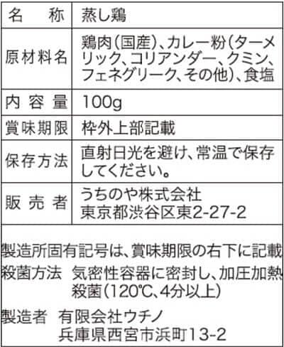 ■ うちのや 国産鶏サラダチキンカレー 100g 12食 |