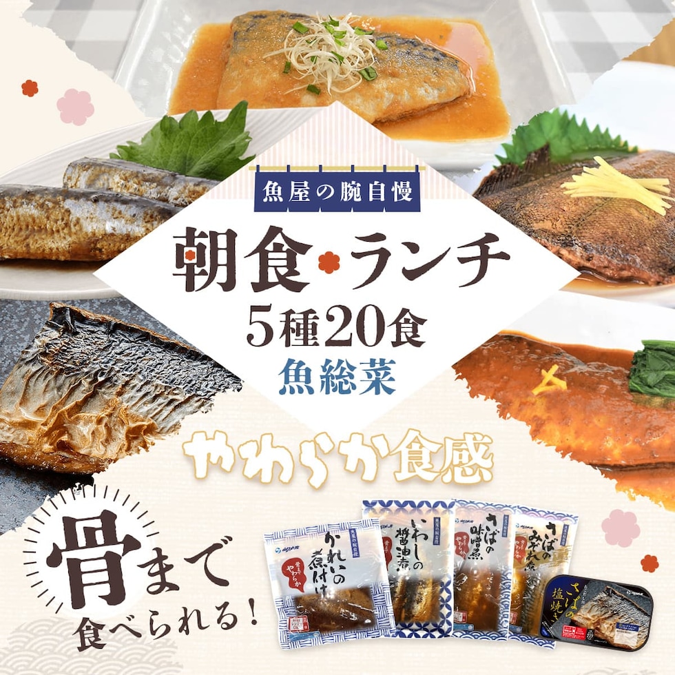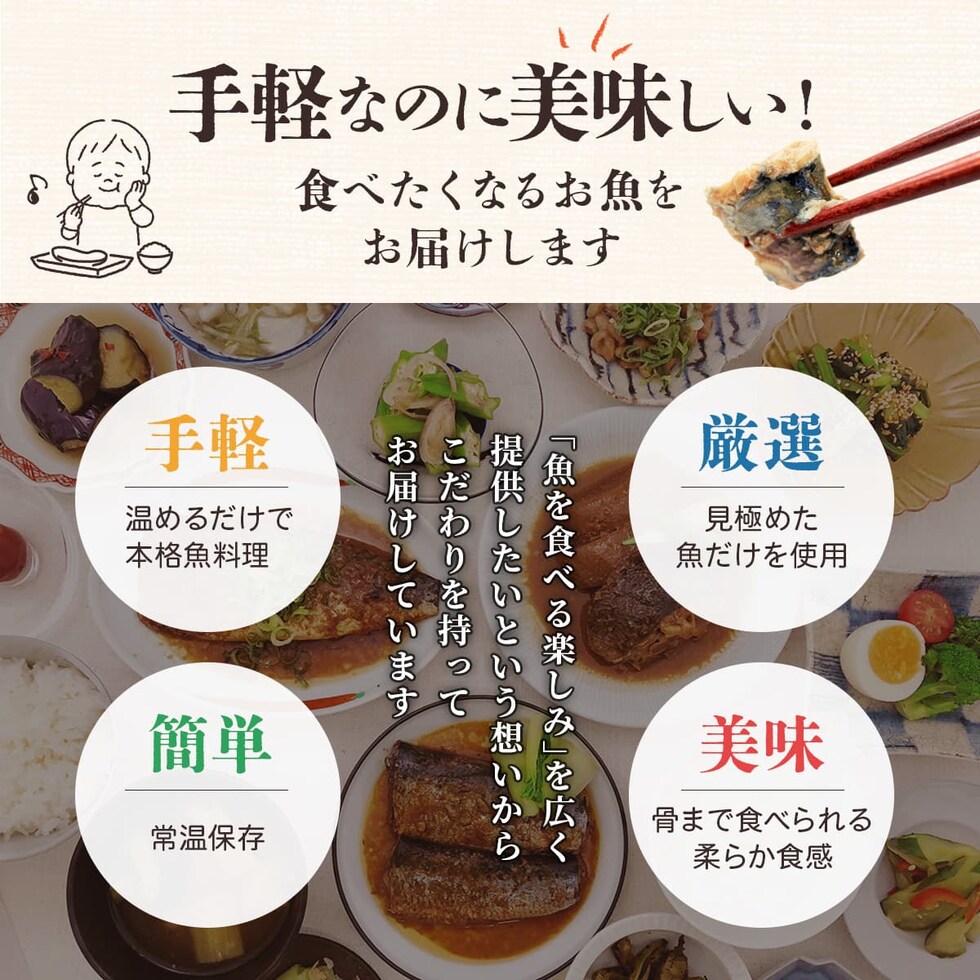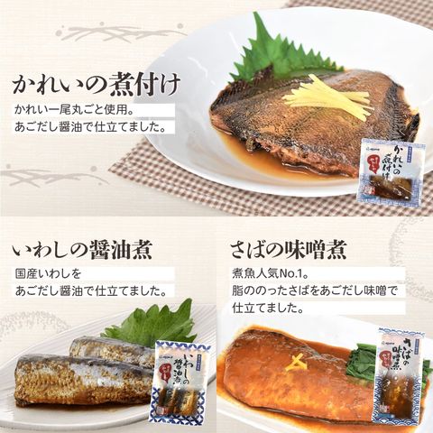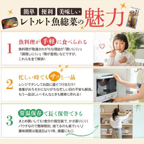 YSフーズ 魚屋が厳選した素材を使用 骨まで食べられる あごだし 仕立ての 脂がのってふっくら 美味しい サバ イワシ カレイ 煮魚 焼き魚 魚惣菜 朝食 ランチ おかずセット レンジ対応 パウチ トレイ なので 容器 袋のまま 温めるだけ で 味噌煮 や 塩焼き 等の 時間と手間のかかる 魚料理 を 手軽 に 美味しく食べられます。 日々の 食事 の おかず ご飯のお供 や 忙しい時の 時短 簡単 ごはん に おすすめ !