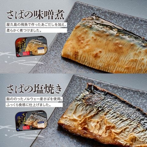 ■ レトルトパウチ いわしの醤油煮 150g×2 いわしの黒酢煮 150g×2 さばの味噌煮 100g×2 さばの醤油煮 100g×2 さばのトマト煮 100g×2 さばのみぞれ煮 100g×2 かれいの煮付け 100g×2 ■ トレー さばの味噌煮 1枚×1 さばの塩焼き 1枚×1 9種 16食 |