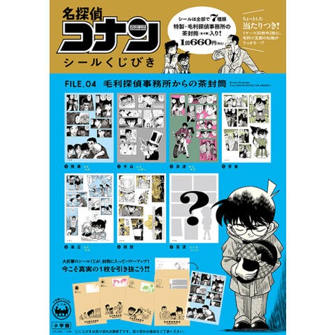 原作まんがから、テーマ別に厳選したコマをスタイリッシュにデザインしたシールを、「毛利探偵事務所」(全4種)の茶封筒に封入してお届け。