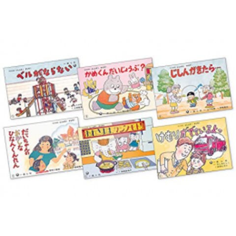 『ベルがならない(地震・避難訓練)』『かめくんだいじょうぶ?(地震・家の中での注意)』『じしんがきたら…(地震・野外での注意)』『だいちゃんのおかしなひなんくんれん(火災・避難訓練)』『おれさまは、カジノモト!(火災・家の中での注意)』『けむりがでているよっ』の全6巻セット。