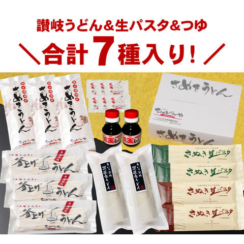 本場讃岐うどん バラエティセット 7種入り 福袋 2026 合計3kg以上 送料無料 讃岐うどん 生パスタ 麺ロール つゆ 詰め合わせ セット うどん パスタ 食べ比べ つゆ付き 並麺 極太麺 フェットチーネ スパゲッティ