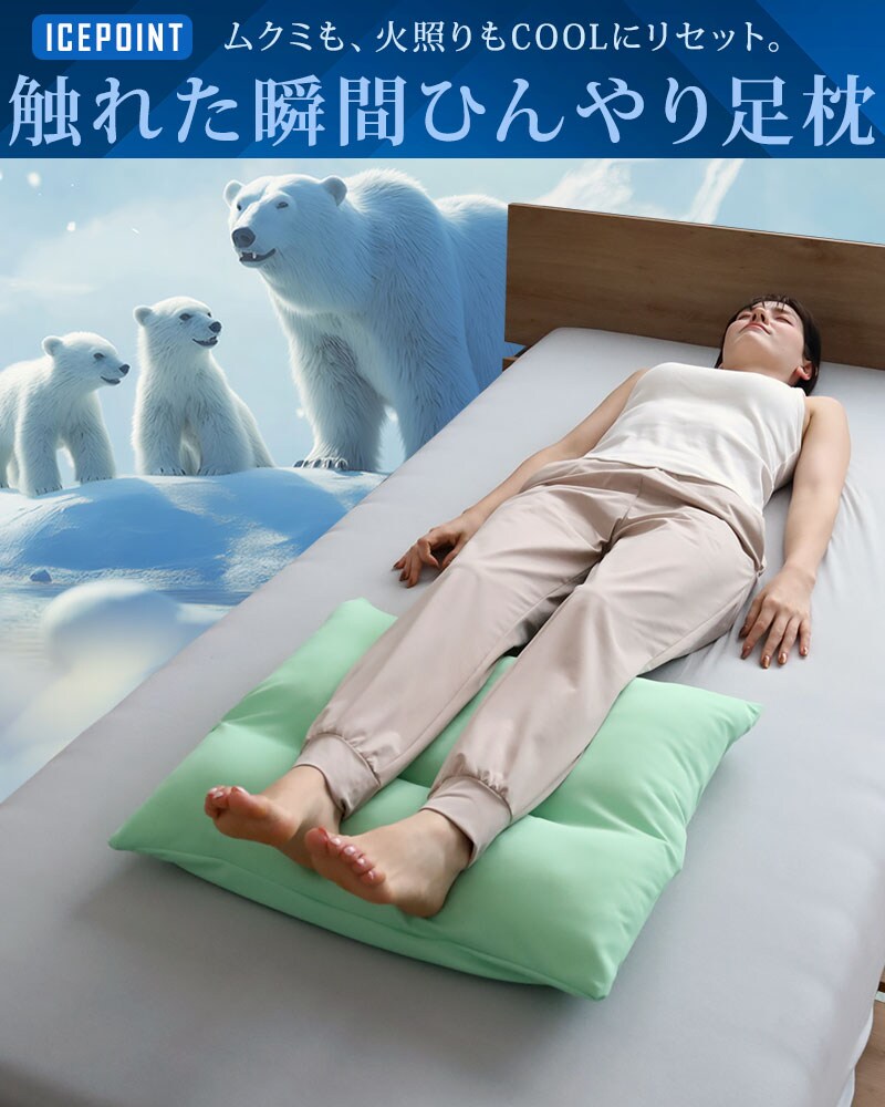 足枕 接触冷感 ひんやり アイスポイント 足枕 (グリーン) 夏用 枕 まくら クール 日本製 大きめ サイズ 東洋紡 夏向き フットレスト 母の日 父の日 ギフト MG プレゼント