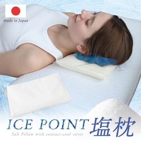 枕 アイスポイント 塩枕 (アイボリー) 塩まくら 日本製 接触冷感 接触涼感 ひんやり枕 枕カバー ソルトピロー 夏用枕 冷たい 暑さ対策 ひんやりグッズ 省エネ エコ 節電 熱中症対策 冷感ピロー pillow MG 春夏