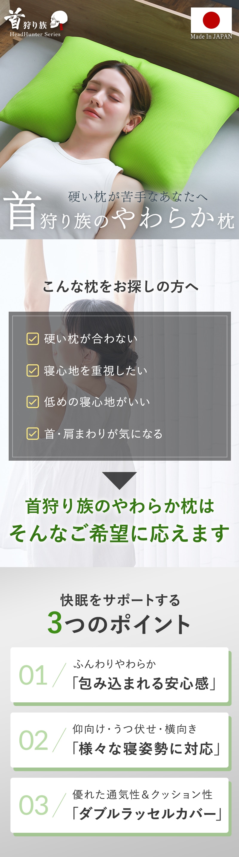 [検索キーワード] 枕 まくら マクラ やわらか 柔らか ふんわり ふわふわ 枕 低め 低い 洗える ウォッシャブル 清潔 通気性 メッシュ 蒸れない 首が痛い 首が痛くならない枕 肩が楽 横向き寝 横向き寝枕 横向き 横向き寝がラクな枕 横寝 いびき 仰向け うつ伏せ 抱き枕 安眠枕 人気 無呼吸 よく眠れる枕 シンプル おすすめ枕 人気枕 枕人気 首狩り族 クビカリゾク メーカー公式 |