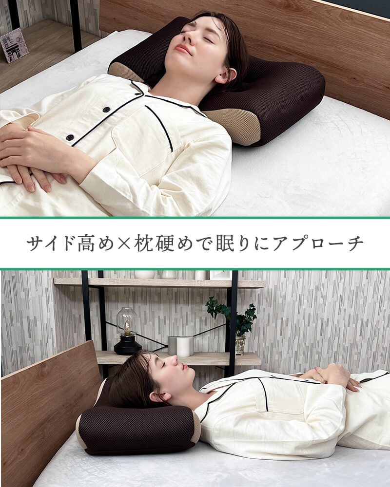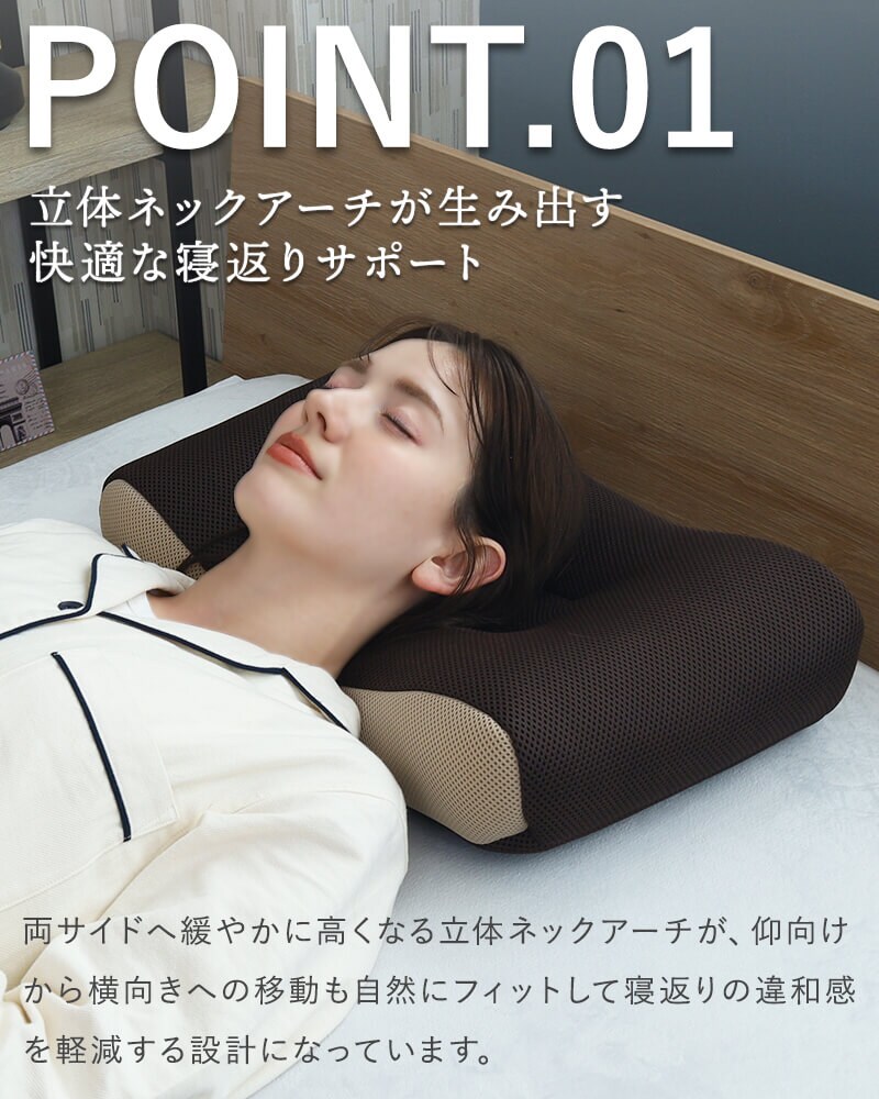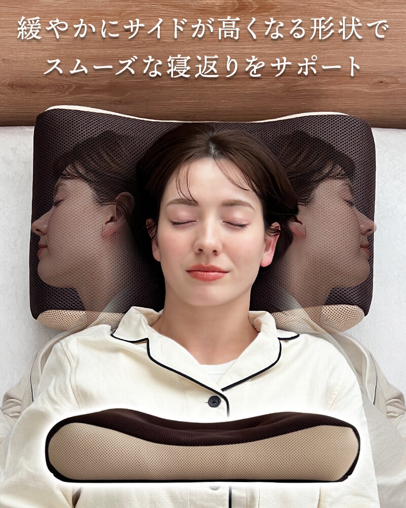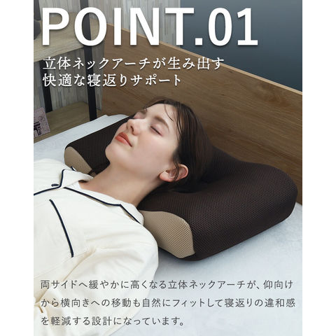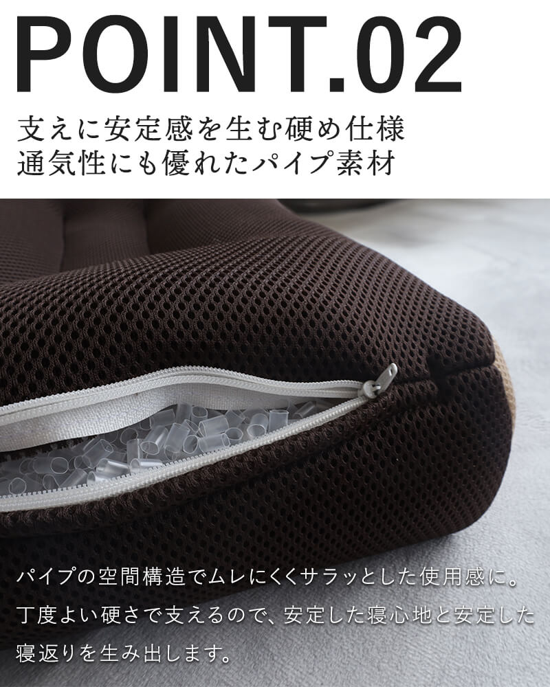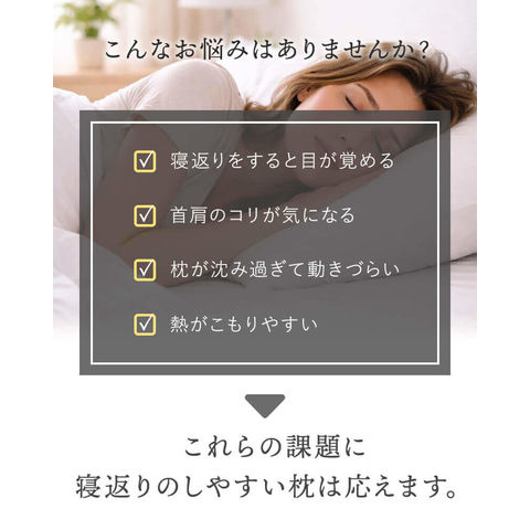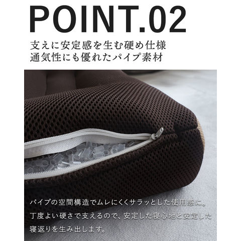 ■サイドが高めで寝返りしやすい 緩やかに高くなるカーブが自然な寝返りをサポートします。 ■硬めでしっかり支えるパイプ枕 寝返り形状に加えて土台が安定して、さらに寝返りをしやすくなっています。 ■蒸れにくいダブルラッセルカバー 通気性が良くサラッとしたメッシュ生地のダブルラッセルを採用。中材のパイプとの相性も抜群です。 | ||