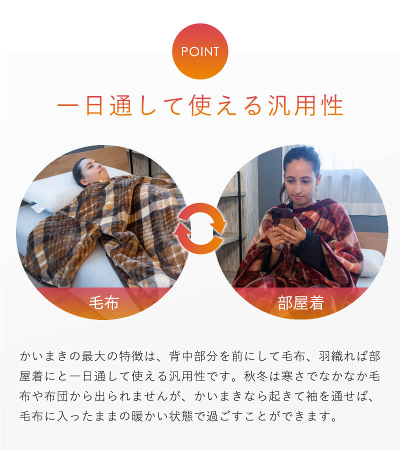 毛布 着る毛布 チェック柄 あったか かいまき ブランケット 140×200cm ギフト あたたかい かいまき毛布 (ブラウン) ギフト スマホ毛布 袖付き毛布 秋冬用