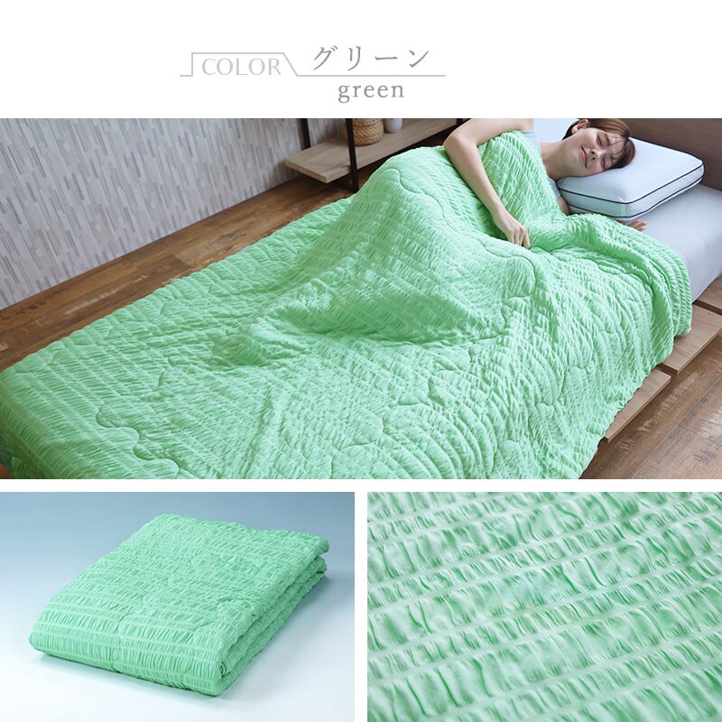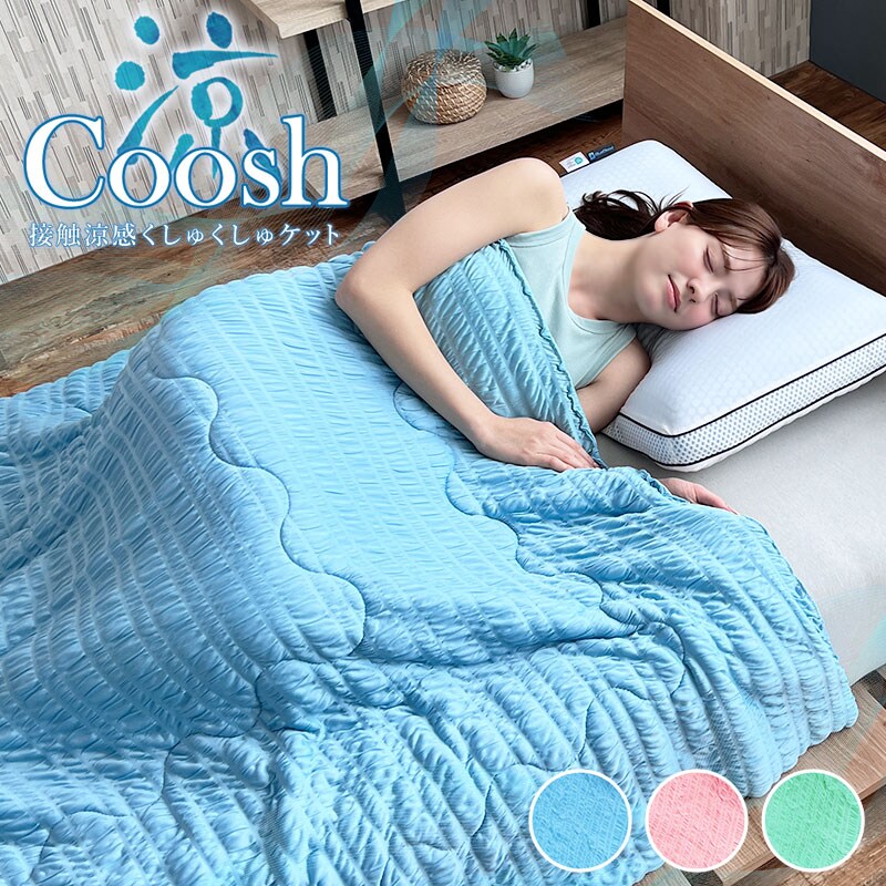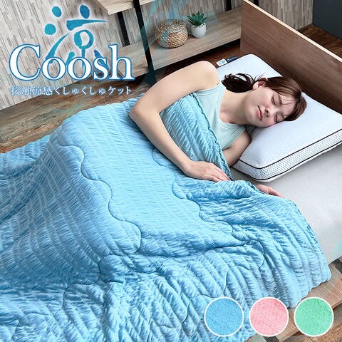 接触涼感 ひんやり くしゅくしゅケット Coosh クーシュ (グリーン) シングル 135×185cm 春夏 ひんやり クール Cool 冷感 肌掛け ブランケット 夏物 寝具 MG