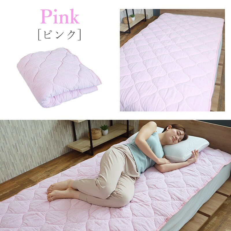 ■タオル地の敷きパッド タオル地でボリューム感のある敷きパッドです。中わたが約500g入っているため厚みがあり、ふんわりとした寝心地。 ■imabari towelブランドのタオル タオルの聖地、今治でつくられた「今治タオル」。今治タオル工業組合による独自の品質基準をクリアしたタオルのみが、安心安全の証である「imabari towel」ブランドを掲げることができるのです。 ■吸水・速乾と保温性 タオル地は綿100%素材なので、吸水性と速乾性が高く蒸れにくいです。 | ||