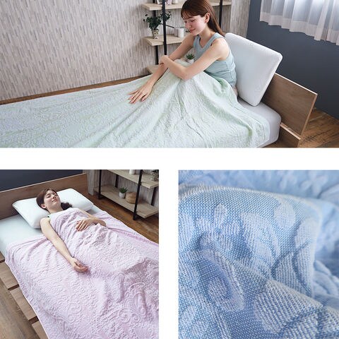 | ■今治産のタオルケット 愛媛県今治市で作られている国産のタオルケットです。軽くて使い勝手のよい薄手タイプです。 ■吸水性に優れた素材 天然素材の綿100%で作られているため、汗や水分吸収してもべたつかず、サラッと気持ちい肌触りが続きます。 ■立体刺繍が美しいジャガード織 刺繍で表現された花柄デザインは美しく高級感があります。プリント生地とは違い、洗濯を繰り返しても、デザインが剥げずに長くお楽しみいただけます。 |