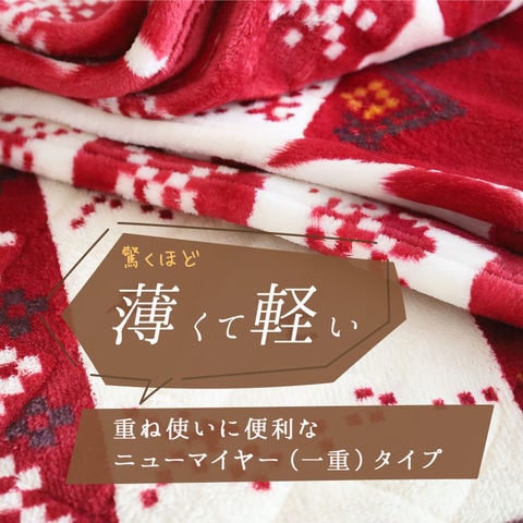 ■なめらかな肌触りのフランネルケット 極細の扁平糸を使用した柔らかでなめらかな肌触り。 ■薄くて軽いインナーケット 極薄&超軽量で軽やかな使い心地。 ■おしゃれな【ノルディック柄】 出しっぱなしでもおしゃれに見える、かわいい北欧柄。 ■重ね使いで【一年中】活躍 春・秋は単体で、冬は羽毛布団の下に。季節に応じてシーズンレスに使える。 ■かさばらないから使い方色々 リビング、車中、アウトドアでも活躍。 ■自宅で【丸洗いOK】 自宅の洗濯機で洗えるのでいつでも清潔。 | ||