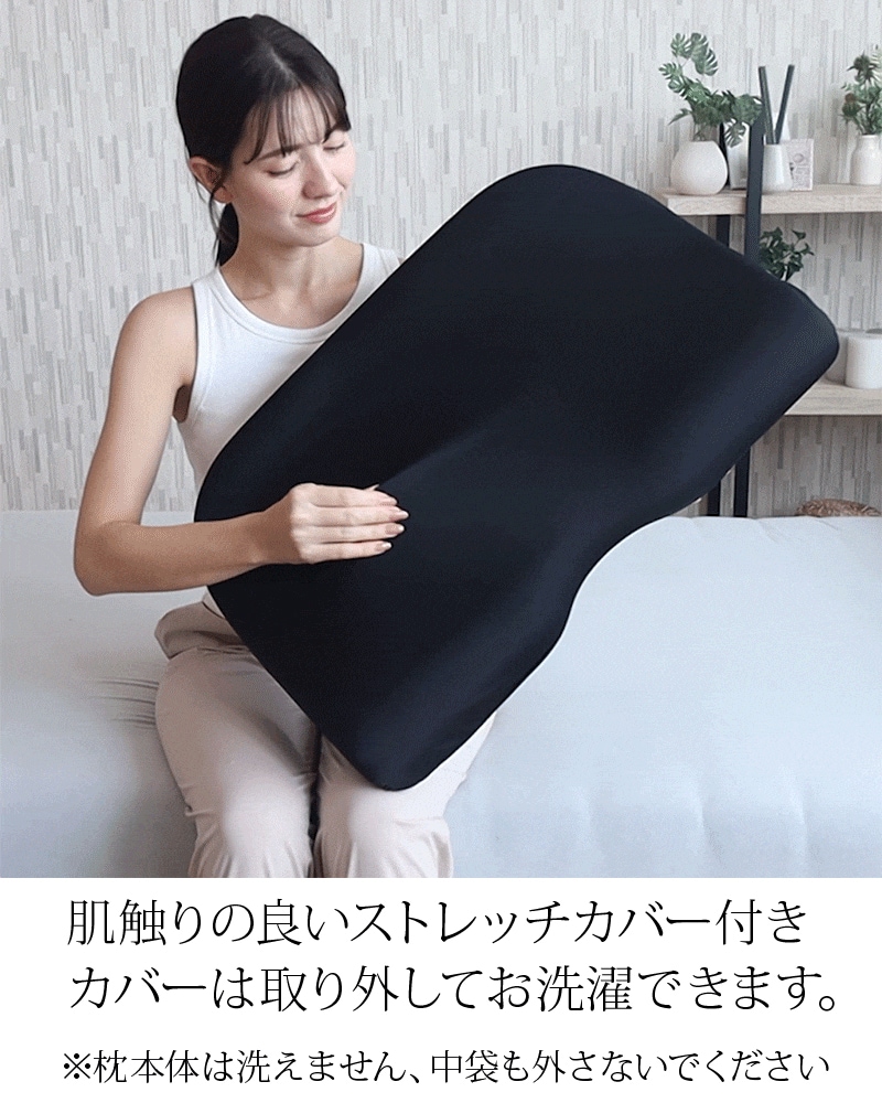 首と肩を一体で支えて理想的な寝姿勢をキープします。