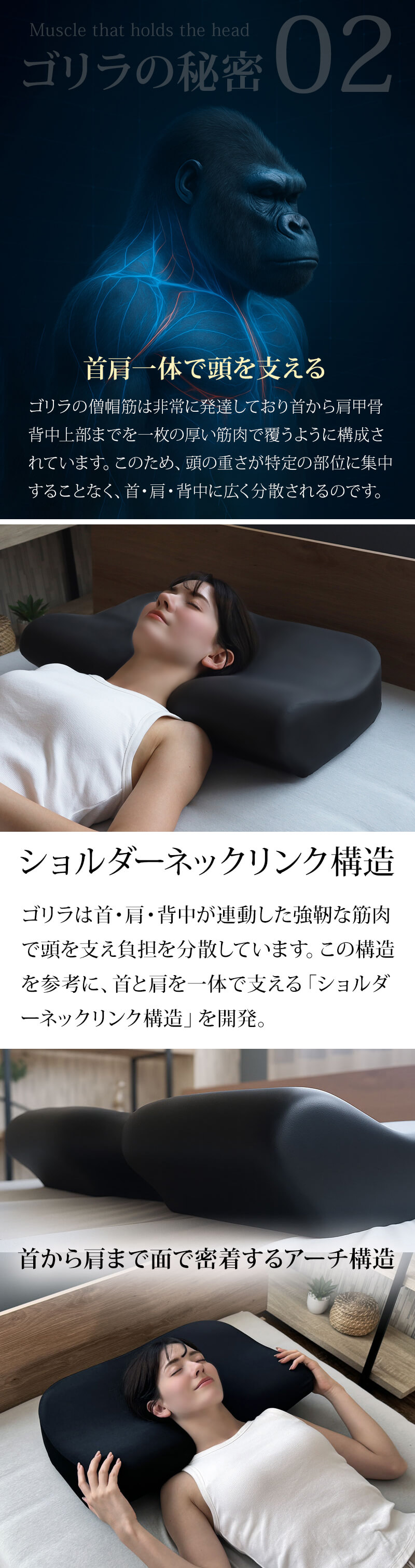 ■ゴリラの僧帽筋から着想を得た立体サポートショルダーネックリンク構造