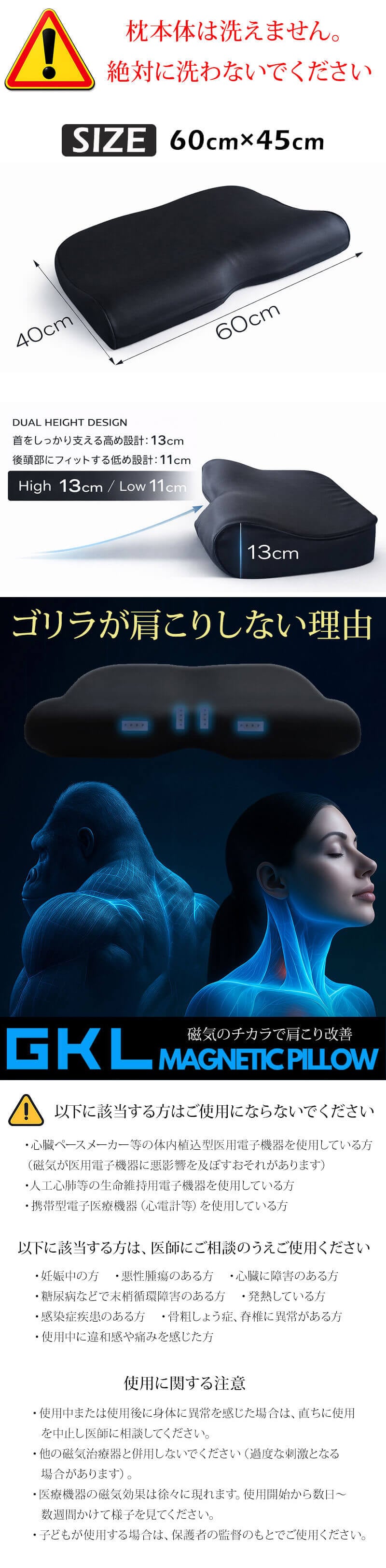 枕 磁気枕  ゴリラが肩こりしない理由 GKL マグネティックピロー 肩こり 首こり 枕 まくら マクラ 血流改善 永久磁石 pillow MG 新生活