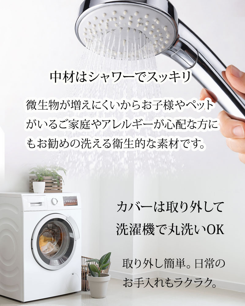 | お洗濯 | 枕本体はシャワーで丸洗い可能、カバーは洗濯ネットをご使用の上お洗濯可能。 | |