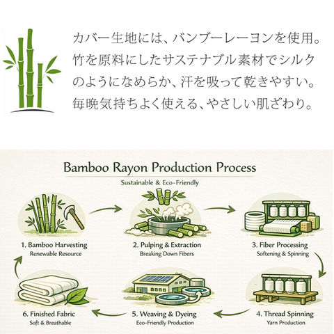 | 素材 | カバー:ポリエステル60%、バンブーレーヨン 中材:3Dファイバー(POE) | |