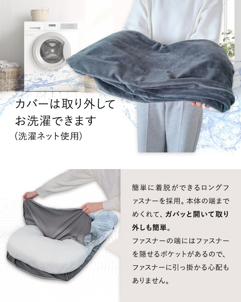 | お洗濯 | 本体は洗濯不可。カバーは取り外してファスナーを閉じ、洗濯ネットに入れてのお洗濯は可。 |