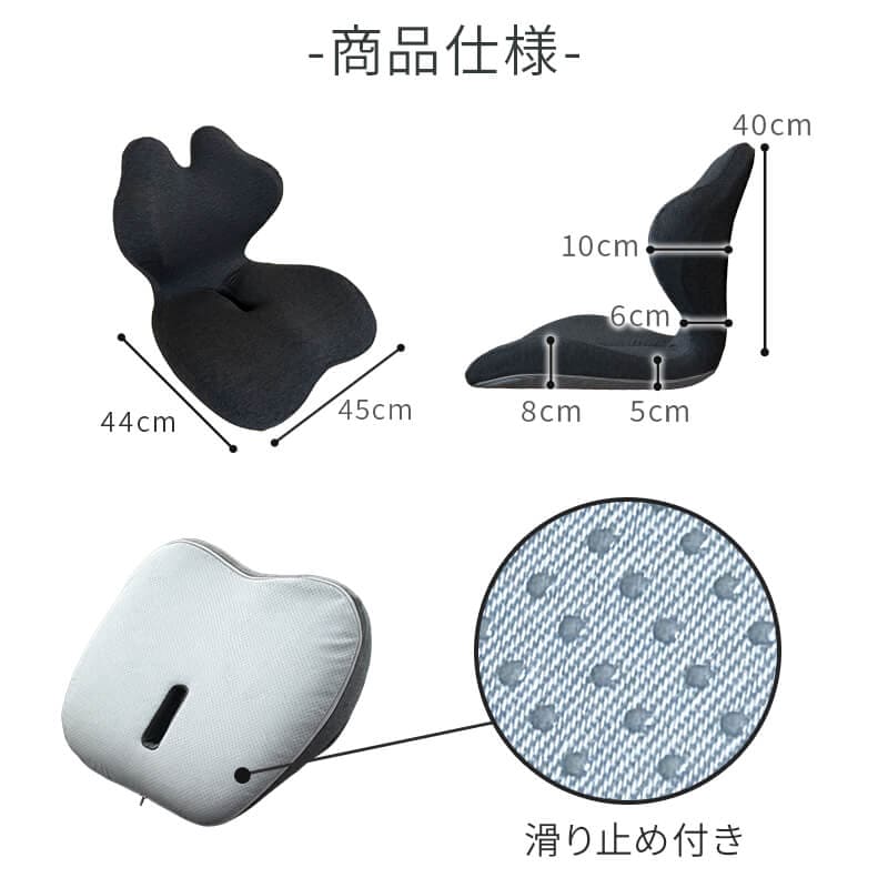 ■置くだけでワンランク上の椅子に進化 背中からお尻まで支える一体型クッションです。使っている椅子に置くだけで、均等に厚みが増えるから、まるで違う椅子のような座り心地に。 ■姿勢を矯正するのではなく崩れにくくする設計 無意識のうちに崩れてしまう姿勢をそっと支えるから、頑張らなくても自然に楽な姿勢を作り出します。 ■面で支える一体構造 エボるクッションは背中からお尻まで一体で支えるため、つなぎ目などに圧が集中せずバランスよく体を支えます。 | ||