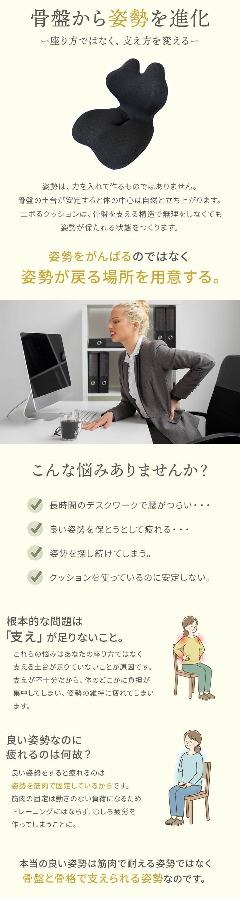 シートクッション エボるクッション 【座り方ではなく支え方を変える】Evolcushion 椅子 クッション 一体型 骨盤 姿勢 低反発 デスクワーク ギフト