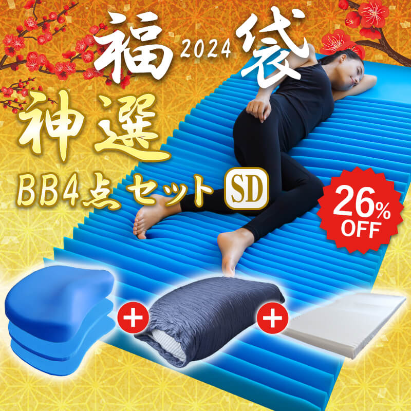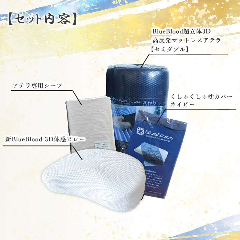 福袋 2024 神選BBセット セミダブル 全身ケアで距骨を休める足楽 マットレス Atera に リニューアル した BlueBlood 3D体感ピロー 、さらにそれぞれの シーツ ・ カバー を セット にしたお得な福袋 枕 快眠