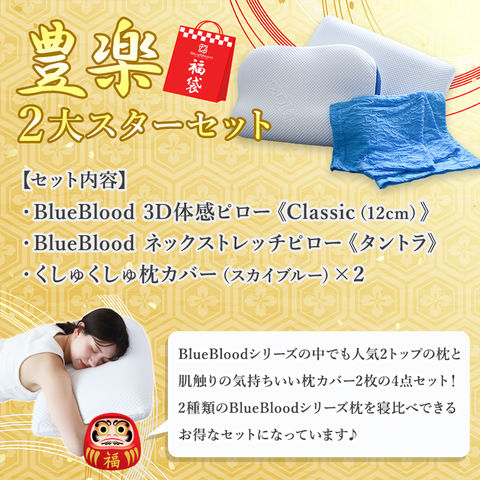 【福袋2026】 豊楽2大スターセット BlueBlood シリーズ BlueBlood 3D体感ピロー classic + BlueBlood タントラ +くしゅくしゅカバー2枚 の セット