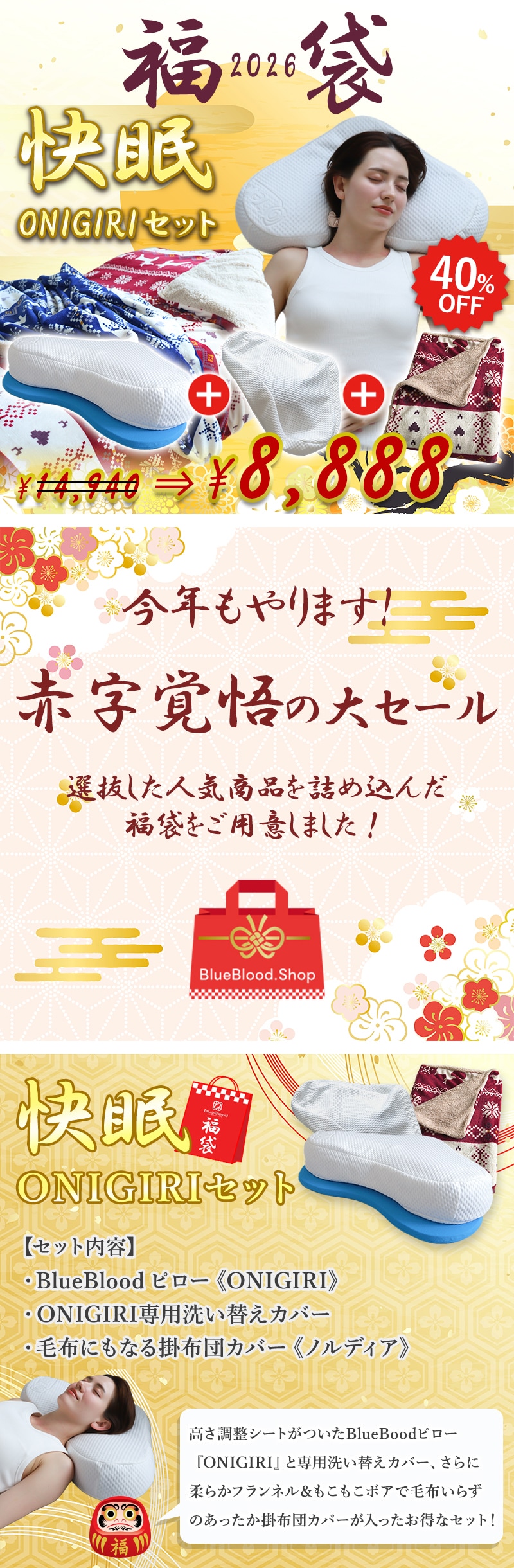 【福袋2026】 快眠 ONIGIRI セット (カバー:レッド) おにぎり 枕 快眠 安眠 ブルーブラッド 快眠グッズ