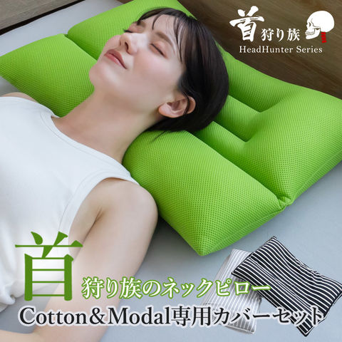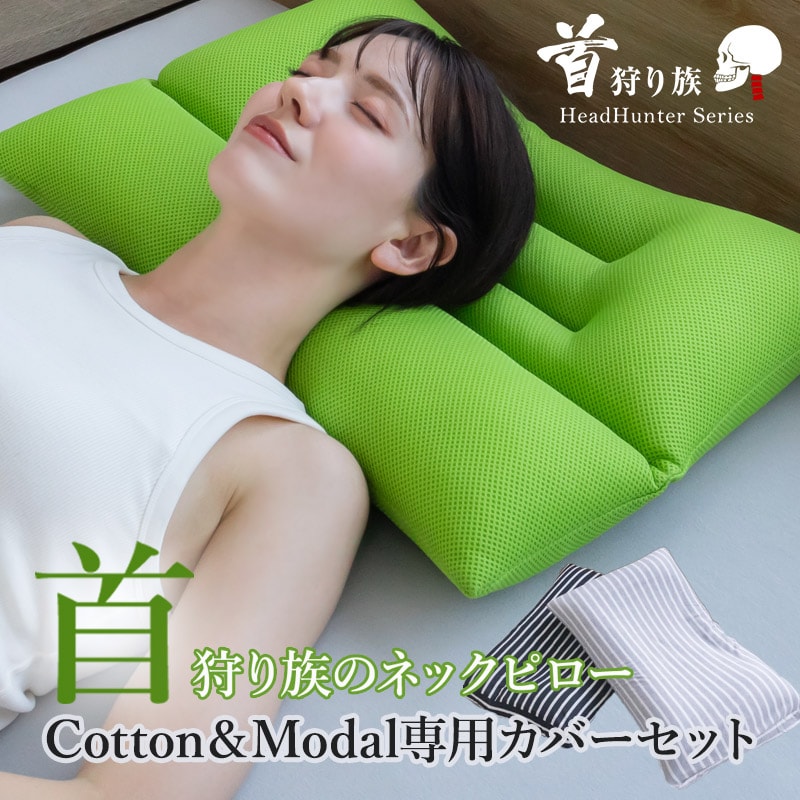 枕 首狩り族のネックピロー レギュラーサイズ 専用カバー セット(グリーン/Black×White) ストレートネック対応枕 ヘッドハンター 枕 まくら 新生活 母の日 父の日 ギフト pillow MG
