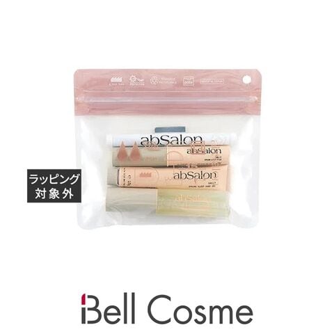 マスクスプレーとしても使えるアブサロンのフレグランスのミニサイズ、アルコール60vol%以上配合のハンドジェル、濃厚な使い心地のスティックバームを『Pake』別注のオリジナルジッパーバッグにセットした、おでかけにあるとうれしいアイテムのミニキットです。