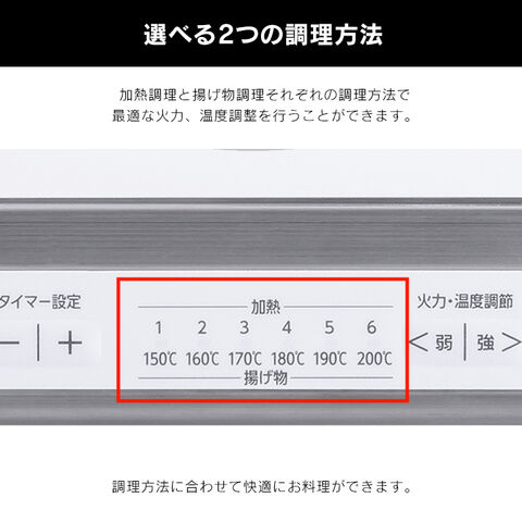 加熱調理から揚げ物まで多用途に使え、煮込み料理に便利なタイマー機能付き(1分~9時間50分)です。