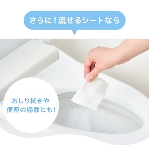 ※トイレのつまりを避けるため、必ず1枚ずつ「大」の水流で流してください。水流が弱いとトイレにつまる可能性があります。
