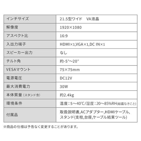 21.5型ワイド VA液晶
