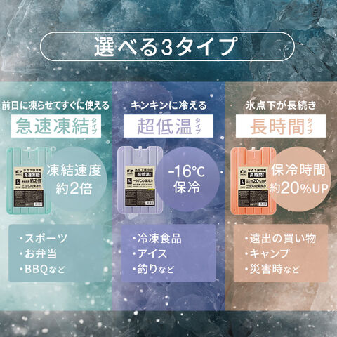 ・長時間タイプ:超低温タイプと比較して保冷時間が約20%UP!朝から夜までずっと冷たい!