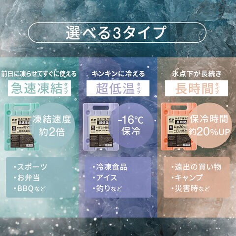 ・長時間タイプ:超低温タイプと比較して保冷時間が約20%UP!朝から夜までずっと冷たい!