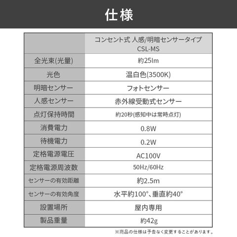 【コンセント式人感/明暗センサータイプ:CSL-MS】